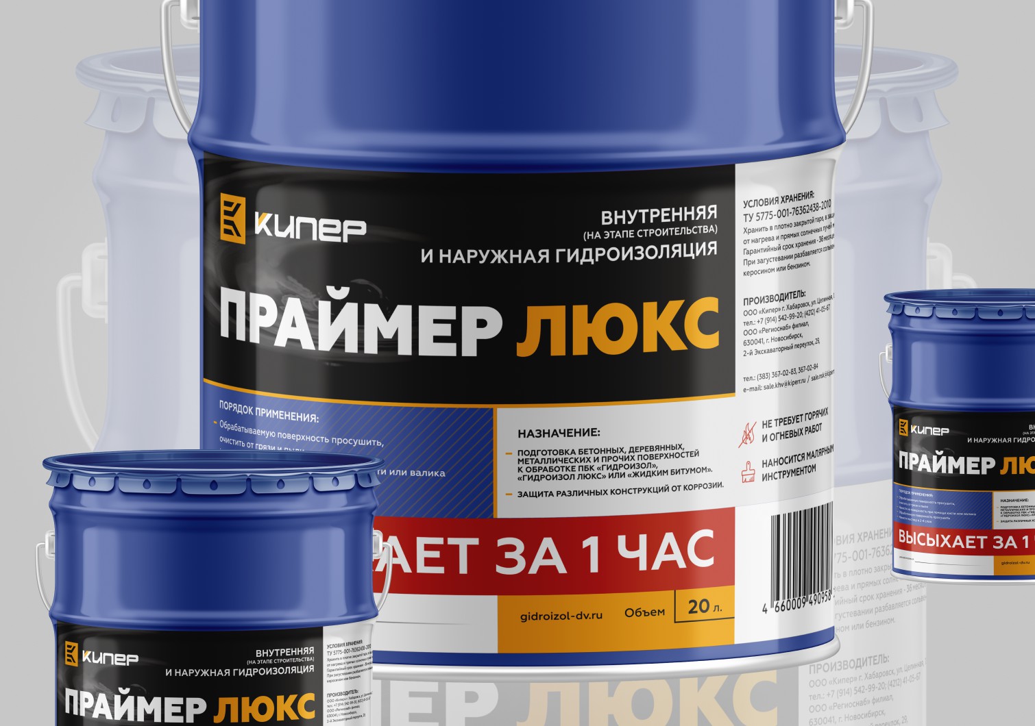 Разработка логотипа и фирменного стиля для бренда по производству гидроизоляции. В рамках проекта разработана линейка всех видов этикеток продукции.